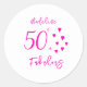 Modern Elegant Black Hot Pink Hearts 50th Birthday Classic Round Sticker