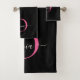 Modern Elegant Black Pink Monogram Script Name Bath Towel Set