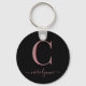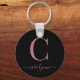 Chic Elegant Pink Rose Gold Monogram Script on a chic Black Round Keychain. Easy to customize with your own name and details. Perfect for your luxury lifestyle! Please contact us at cedarandstring@gmail.com if you need assistance with the design or matching products.