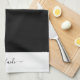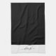 Modern Elegant Black White Script Name Monogram Tea Towel