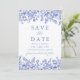 Modern Elegant Blue Floral Photo Save the Date Invitation