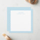 Modern Blue Gingham Baby Name Nursery Squared Note Card with a gingham pattern in a soft baby pink colour, personalise it with baby's name, and custom "note from" text. A simple, modern, and elegant design with a combination of typography and calligraphy. Minimalist design card for your baby's stationery. Design by Ana Garza/Kardz Studio Designs. Feel free to contact me through the Zazzle Chat if you have any questions.