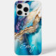 Modern Elegant Blue Gold Marble Personalised Name iPhone 15 Pro Max Cases features your personalised name in an elegant calligraphy script typography on a modern blue and gold marble background. Perfect gift for her for birthday, mum for Mother's Day, sister or bestie for Christmas and holidays. Designed by ©Evco Studio www.zazzle.com/store/evcostudio