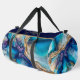 Modern Elegant Blue Gold Marble Personalised Name Duffle Bag