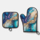 Modern Elegant Blue Gold Marble Personalised Name Oven Mitt & Pot Holder Set