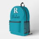 Modern Elegant Blue-Green Monogram Printed Backpack