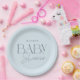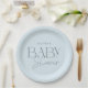 Modern Elegant Blue Script Baby Shower Paper Plate