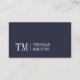 Elegant customisable business card template with dark blue background and white bold monogram. Modern, simple and elegant design. Perfect for consultant, attorney, legal or financial related professionals.