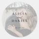Modern elegant bride groom name date photo wedding classic round sticker