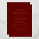 Minimalist, modern wedding invitation featuring your names and wedding details in gold foil lettering with calligraphy script accents. The burgundy background can be changed to a colour of your choice. Designed to coordinate with our Modern Elegance wedding collection.