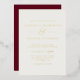 This elegant wedding invitation features a minimalist modern design in a light cream with real gold foil typography. The reverse side is a rich burgundy. Personalise with all of your important details including bride and groom name, wedding date, time and location.