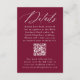 Modern Elegant Burgundy QR Code Wedding Details Enclosure Card