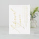 Invite guests to your wedding rehearsal dinner with this customisable rehearsal dinner invitation. It features elegant modern calligraphy. Personalise this calligraphy rehearsal dinner invitation by adding names, date, time, and other event details. This gold foil rehearsal dinner invitation is perfect for any wedding theme and season.