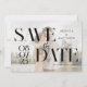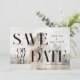 Modern wedding save the date featuring elegant chic graphic design typography with your custom photo and faux vellum digital overlay.