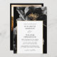 This elegant black and gold floral wedding invitation can be personalised with your information in modern typography and your wedding details on the reverse, along with your wedding website QR code and special photo. Designed by Thisisnotme©