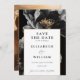 This elegant black and white floral wedding save the date can be personalised with your information in modern typography and a special photo on the reverse. Designed by Thisisnotme©