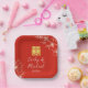 Modern elegant Chinese wedding floral script red Paper Plate