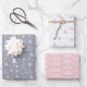 An elegant modern minimal pink, white and grey Christmas tree patterned wrapping paper set for the holiday season.