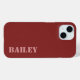 A simple and modern deep red/burgundy phone case, designed for you to customise by adding your name, initials, or custom text to the side of the case. You can also change the font, background colour, text colour, etc., by clicking on "personalise this design," then "edit using design tool." Please message the designer if you need help making any changes.