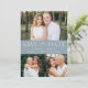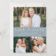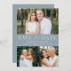 Elegant, multi-photo save the date featuring "Save the Date" displayed in white lettering with a dusty blue background. Personalise the modern QR save the date card with 3 of your favourite photos, your names, wedding date, and wedding location. The dusty blue save the date reverses to display your custom QR code with wedding website and custom text.