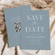 Announce your upcoming nuptials in style with our elegant, modern QR code save the date card. The non-photo save the date features "Save the Date" in white serif and script fonts with a dusty blue background. Personalise the front of the save the date card by adding your names, wedding date, wedding location, and other wedding details. The minimal save the date card reverses to feature your custom QR code with wedding website and custom text. Perfect save the date for both modern formal and casual weddings!