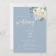 Modern Elegant Dusty Blue Wedding Invitation featuring watercolour ivory flowers and greenery.