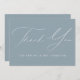 Elegant wedding thank you card featuring "Thank You" in a white calligraphy script with your last name displayed below with a dusty blue background. The elegant wedding thank you card reverses to display your custom thank you message and first names in white lettering. Design coordinates with our Modern Elegance wedding collection.