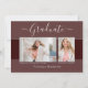 Beautiful 2 photo 7"x5", graduation announcement cards. Featuring modern text with elegant calligraphy script. Your photos are thinly edged with light grey trim for that extra "Pop". The design is complimented with regal background shades of dusty rose. The back of the card offers a personalised announcement text space for that special graduate. To see more items like this, visit my store here at "www.Zazzle.com/LakeViewCardCo". Thanks