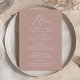 Simple and elegant wedding menu featuring "Menu" displayed in a modern white script with a dusty rose background or colour of your choice. Personalise the dusty rose wedding menu by adding your names, wedding date, and menu information. Designed to coordinate with our Modern Elegance wedding collection.