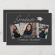 Beautiful 3 photo 7"x5", graduation announcement cards. Featuring modern text with elegant calligraphy script in silver colour. Your photos are thinly edged with silver grey trim for that extra "Pop". The design is complimented with a stylish dark platinum grey background. The back of the card offers a personalised announcement text space for that special graduate. To see more items like this, visit my store here at "www.Zazzle.com/LakeViewCardCo". Thanks