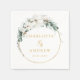 Modern, elegant eucalyptus, white flowers, wedding napkins.