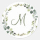 Modern Elegant Eucalyptus Wreath MONOGRAM Boho Classic Round Sticker