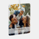 Personalise your holiday christmas tree with a beautiful modern family 2 photo metal square ornament, featuring your family name and the year with your family photos on the front and back. This custom, unique design features an elegant calligraphy style font type in bronze colour over a chic white gradient complimenting your families photo. The perfect housewarming addition to your holiday décor.