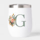 Modern Elegant Floral Monogram Thermal Wine Tumbler | Custom Personalised Gift