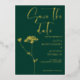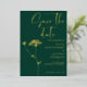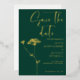 Modern elegant gold foil design . Simple modern handwritten typography in gold foil, stunning emerald green background and adding to it subtle floral touch - sketch of Queen Anne's Lace. You can personalise the wording, font style of this invitation card. Match items available in collection