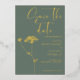 Modern elegant gold foil design . Simple modern handwritten typography in gold foil, stunning sage green background and adding to it subtle floral touch - sketch of Queen Anne's Lace. You can personalise the wording, font style, colour and size of this invitation card. Match items available in collection