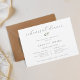 Rehearsal dinner invitation card featuring delicate calligraphy with modern elegant foliage design.