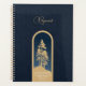 Stay organised and inspired with this elegant personalised spiral planner, blending timeless sophistication with a modern aesthetic. The deep blue herringbone background creates a professional yet approachable feel, while the stunning gold accents add a touch of luxury. The front cover features a graceful script name personalisation above a serene woodland silhouette, framed by an arched window design that evokes calm and focus. Beneath the illustration lies a beautifully typeset Shakespeare quote: “This our life, exempt from public haunt, finds tongues in trees, books in the running brooks, sermons in stones, and good in everything.” — As You Like It, grounding this planner in both nature and wisdom.