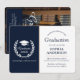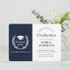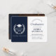 Announce your achievement in style with this timeless navy & white graduation announcement card. The elegant two panel design features a deep navy front adorned with a classic graduation cap and laurel wreath motif, along with a short, inspiring message. The back panel highlights your graduate photo with an elegant script overlay of “Graduate” and space for a personal congratulatory message. Ideal for formal celebrations, this card exudes professionalism and sophistication.