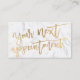 Modern elegant gold foil script typography white marble with your next appointment written in a modern and stylish script calligraphy. Perfect for beauty salon, hair stylist and makeup artists.
