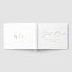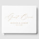 Elegant wedding guestbook featuring "Guest Book" displayed in a modern gold calligraphy script on a white background. Personalize the front of the simple wedding guest book with your names and wedding date. The back of the guest book displays your monogram initials. Add your married name and wedding date to the spine of the guest book.