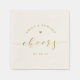 Custom-designed wedding napkins featuring "cheers" modern elegant gold script design.