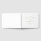 Elegant wedding guestbook featuring your names and wedding date in gold lettering on a white background. Personalize the spine of the simple wedding guest book with your married name and wedding date.