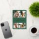 Celebrate the season with this modern, elegant Merry Christmas photo card design featuring stylish gold foil typography together with your family name and year, plus a customisable four photo collage to the front and one to the reverse. A personal greeting message is also on the reverse for you to add a special note. Perfect for modern families who want tastefully styled Christmas cards, this elegant design showcases your favourite photos, whilst the eye-catching gold foil contrasts beautifully against the rich forest green backdrop. Your own photos then bring an extra special charm to create a perfectly balanced, modern and warm aesthetic to share your love and holiday season greetings with friends and family!