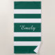 Modern Elegant Green Stripes Pattern Name Beach Towel