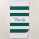 Modern Elegant Green White Stripes Pattern Name Beach Towel