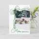 An modern and elegant family photo Christmas card featuring a whimsical hand-drawn green and white bow and script font. This minimal holiday card in simple yet festive colour palette is perfect for sharing warm season’s greetings, Merry Christmas wishes, and custom holiday messages with friends and family in style.