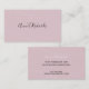 Your own name written in a stylish cursive font style on a pale pink background with thin lines along, with additional contact information at the back of this elegant prof card