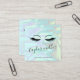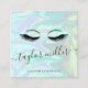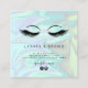 Gorgeous eyelash extensions business card design featuring colorful faux holographic texture, lashes and elegant calligraphy font.