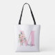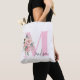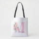Modern Elegant Initial Name Pink Floral Monogram Tote Bag